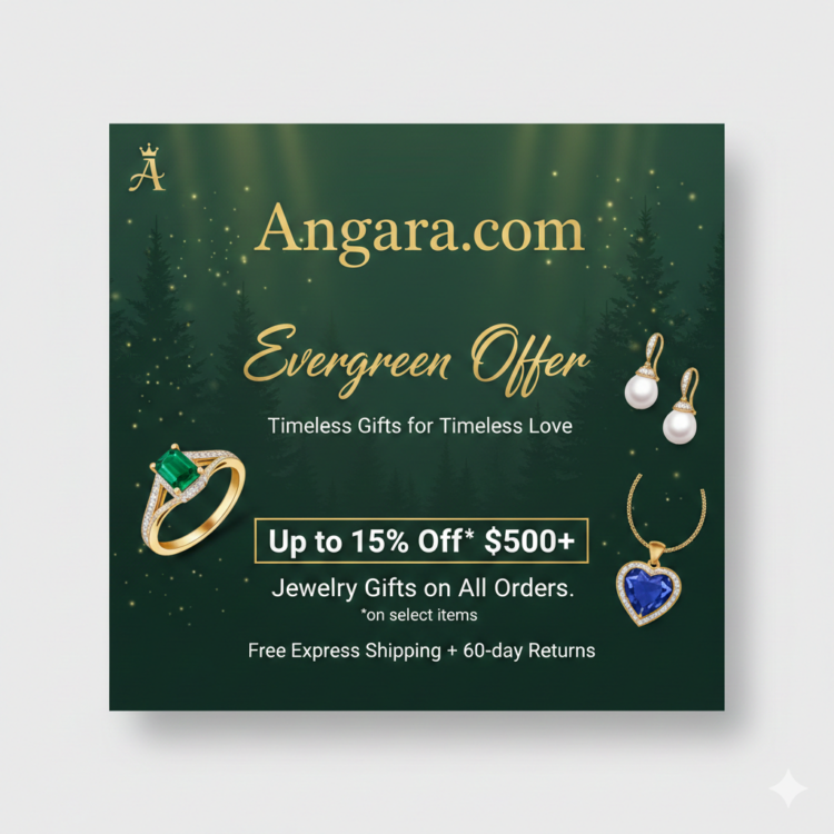 Shopping for meaningful jewelry — whether for anniversaries, weddings, birthdays, or “just because” moments — involves balancing quality, price, and peace of mind. Angara.com’s current offer includes up to 15% off qualifying orders of $500 or more, free express shipping, and a 60-day return window — wording it as “Evergreen Offer — Timeless Gifts for Timeless Love.”